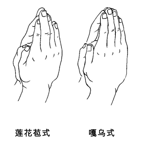 观想自身变为无数之身,这些身体及六道众生同时向上师莲师磕头,并诵七支供词。磕头时,先于心口合掌,乃表示恭敬之义。掌心含空。合掌有莲花苞式及小嘎乌(方形的小法器)式。“莲花苞式”左右中指按于食指及无名指尖合掌;“嘎乌式”左右十个手指指尖各自接合即可。